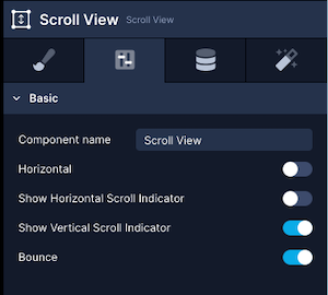 The default scrolling orientation of the ScrollView component is vertical. For this particular screen, let’s use the default orientation. To change it, you can go to the Configs tab: