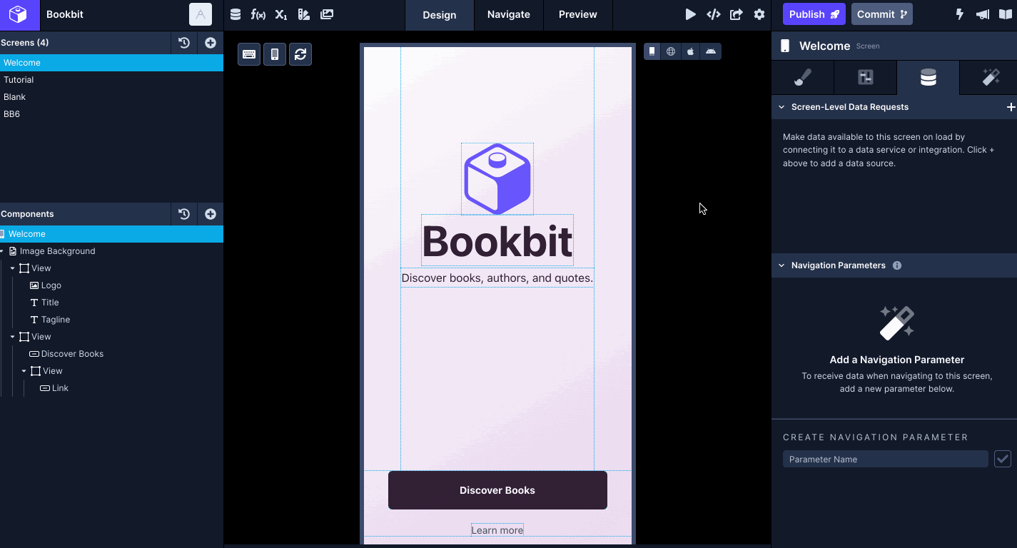 In the first tutorial in the series on creating a Bookbit Starter app from scratch, the focus was on covering the UI elements that the Draftbit’s Builder offer and how to implement them to create mobile app screens. In this tutorial, let’s apply this knowledge and learn how to use real-time data in the screens when building an application.