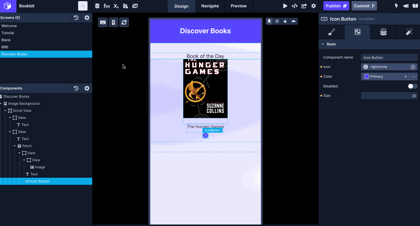 To fetch real-time data in an app, Draftbit Builder supports integrating REST APIs. You can connect nearly any third-party Service that exposes its REST API endpoints to a Draftbit app. We have a list of REST API integrations here that are officially supported. For the current example, let’s build the Discover Books screen using Example Data API.