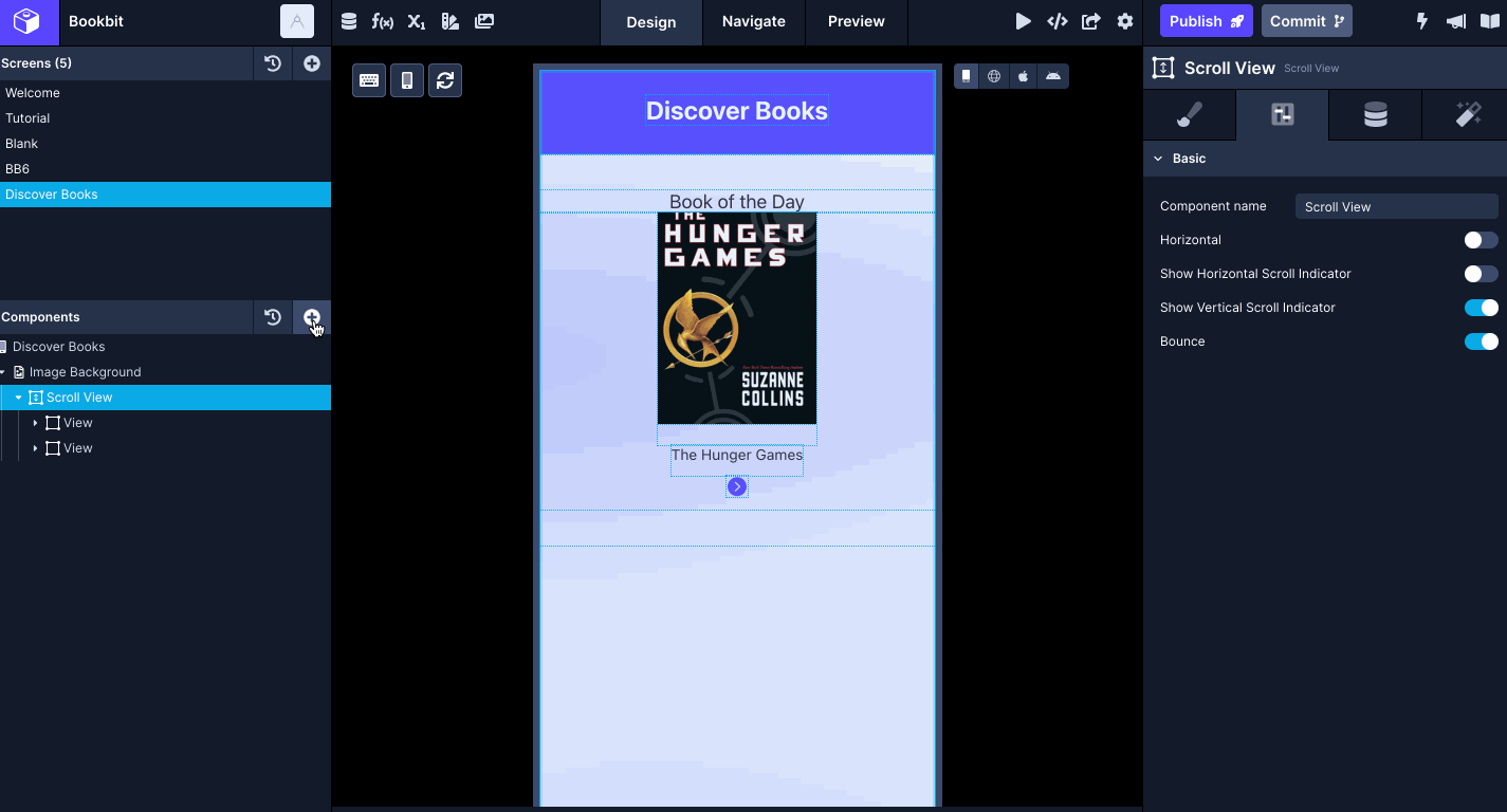 - Add a new Blank screen using the plus icon button in the left panel and call it Discover Books.